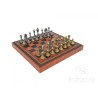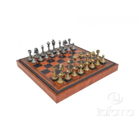 Set scacchiera in similpelle con contenitore e scacchi in metallo modello Staunton.