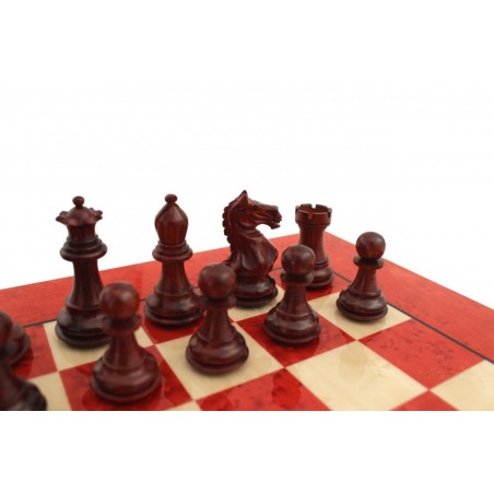 Set scacchiera in radica di Erable rossa e scacchi in legno Staunton