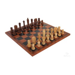 Set scacchiera in similpelle e scacchi in acacia modello Moderno, intagliati a mano.