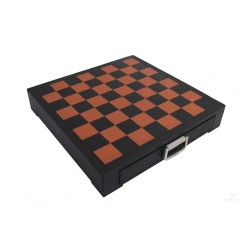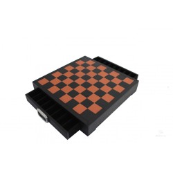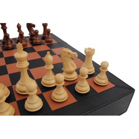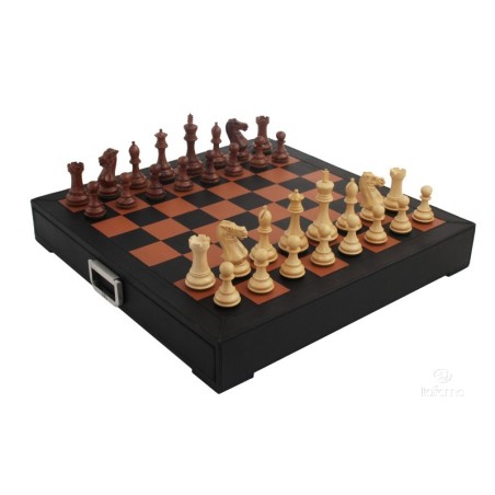 Set scacchiera in pelle con cassetto e scacchi in legno Staunton Elegance