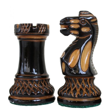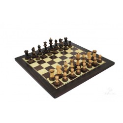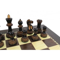 Set scacchiera in legno effetto noce e scacchi intagliati a mano bicolore.