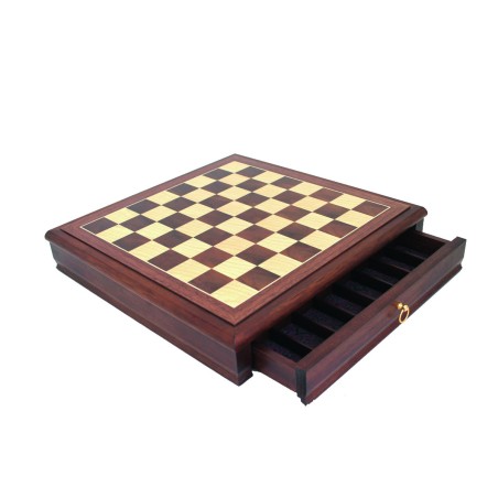 Scacchiera stile classico in legno pregiato, intarsiata a mano, con cassetto porta pedine