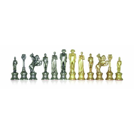 Scacchi napoleonici, in metallo, stampati e rifiniti a mano e curati nei minimi dettagli. Un vero bijoux per gli appassionati dell'imperatore Napoleone. Un modo per rivivere le battaglie napoleoniche attraverso le strategie degli scacchi. Un pezzo unico di arredamento da posizionare sopra la vostra scacchiera o su una delle scacchiere disponibili nel nostro store online o fisico.