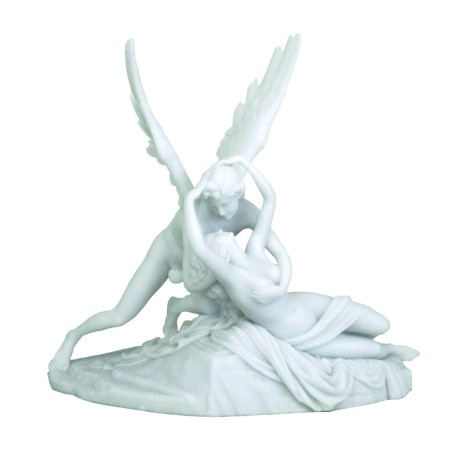 Statua di "Amore e Psiche" di Antonio Canova, in resina bianca e rifinita a mano in ogni singolo dettaglio. Amore e Psiche è stata realizzata da Antonio Canova tra il 1787 e il 1793 ed è conservato presso il museo del Louvre, a Parigi. “Amore e Psiche” è una delle più famose statue dello scultore Antonio Canova, realizzata indicativamente tra il 1787 ed il 1793 ed attualmente esposta al Museo del Louvre di Parigi, mentre una seconda copia (sempre ad opera dello stesso scultore) è esposta al Museo Ermitage di San Pietroburgo in Russia. Questa statua, molto elegante e sensuale, rappresenta Psiche, donna mortale di una bellezza così eccezionale da essere paragonata a Venere, mentre abbraccia il suo sposo Amore-Cupido, nonostante essa stessa sia all'oscuro della sua identità, poiché Cupido si presenta solo nell'oscurità della notte.