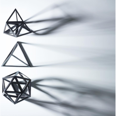 Tetraedro di Leonardo Da Vinci, scultura tridimensionale della struttura atomica del fuoco