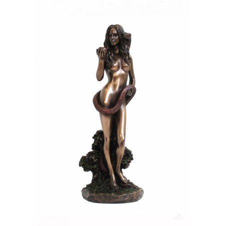 Statua in Resina Bronzata, rifinita a mano in ogni minimo dettaglio. Eva, il cui significato è “colei che dona la vita”, è la prima donna del mondo, creata per fare da compagna ad Adamo e nata da una sua costola, come narrato nel libro della Genesi nella Bibbia. Cedendo alla tentazione del Diavolo, tramutatosi in serpente, mangiò il frutto proibito dall’albero della vita e pertanto è all’origine del peccato originale che è proprio di tutti gli esseri viventi dopo di lei. Dalla sua unione con il primo uomo Adamo ebbero origine Caino, Abele ed in seguito tutta la razza umana.